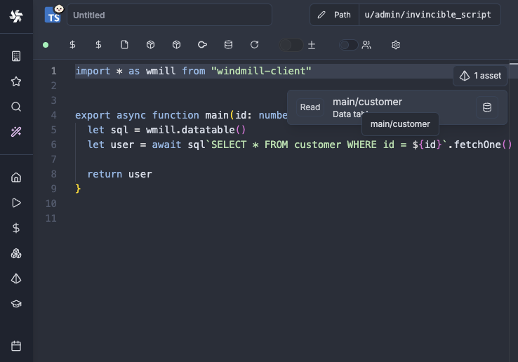 Pin database resource path directly within a SQL script instead of filling it through the UI.